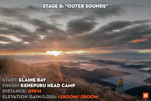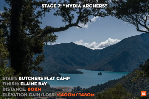 Stage 8: A bit of a sting in the tail after a simple bike stage. GZ Pursuit teams will paddle out of the Pelorus River into Pelorus Sound and the Kenepuru Sound. They’ll be hoping there isn’t a headwind. The route culminates with an off-piste assault on Mt Stokes, the highest summit in the Marlborough Sounds before descending to the relative serenity of Kenepuru Head Camp.